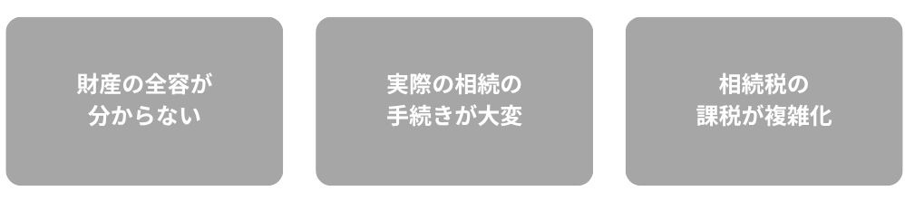 このような状態で相続が発生すると、財産調査だけで長期間を要することがあります。